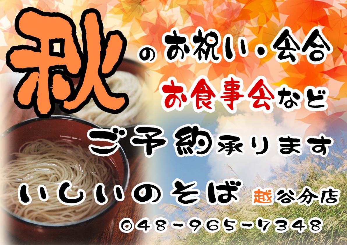 | 宴会のご予約について(歓送迎会・お祝い事・各種会合・お食事会など) いしいのそば越谷分店は福島県は旧山都町に本店のある十割りそばの店、「いしいのそば福島本店」の分店です。おそばを中心として福島県の田舎料理や郷土料理、山菜料理などを扱ってます。その他にマスターが「美味しい!」と思ったものを季節に合わせて集め、お客様にご提供させていただいてます。 各地の地酒、各種焼酎も扱ってます。 宴会のメニューはそれらのメニューのラインナップの中から、季節やお客様のご予算を考慮して、おまかせで準備させていただいてます。 ご予約はお電話にて承ります。 いしいのそば越谷分店 048−965−7348 |